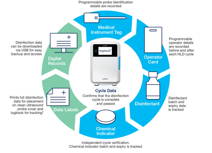 References: 1. AORN 2018. High-Level Disinfection. In: AORN Guidelines for Perioperative Practice. Denver, CO. 2. ANSI/AAMI ST58:2013 Chemical sterilization and high-level disinfection in health care facilities. 3. CDC 2008 Guideline for Disinfection and Sterilization in Healthcare Facilities. 4. AS 5369:2023 Reprocessing of reusable medical devices and other devices in health and non-health related facilities. 5. Australasian Society for Ultrasound in Medicine (ASUM). Australas J Ultrasound Med. 2017;20(1):30–40. 6. Australian Commission on Safety and Quality in Health Care. National Safety and Quality Health Service Standards, second edition. November 2017. 7. CAN/CSA-Z314-18. Canadian Medical Device Reprocessing. February 2018. 8. Health Service Executive. Quality Improvement Division (2017). HSE Guidance for Decontamination of Semi‐critical Ultrasound Probes; Semi‐invasive and Non‐invasive Ultrasound Probes. 9. Health Protection Scotland (2016). NHS Scotland Guidance for Decontamination of Semi-Critical Ultrasound Probes; Semi-invasive and Non-invasive Ultrasound Probes. 10. Welsh Health Technical Memorandum (2014). WHTM 01-06 - Decontamination of flexible endoscopes Part C: Operational management. 11. Department of Health (UK) (2016). Health Technical Memorandum 01-06 Part C Operational management. 12. Ministère des affaires sociales et de la santé (2016). INSTRUCTION N° DGOS/PF2/DGS/VSS1/2016/220 du 4 juillet 2016 relative à relative au traitement des endoscopes souples thermosensibles à canaux au sein des lieux de soins. 13. Kommission für Krankenhaushygiene und Infektionsprävention and Bundesinstitut für Arzneimittel und Medizinprodukte. Anforderungen an die Hygiene bei der Aufbereitung von Medizinprodukten.